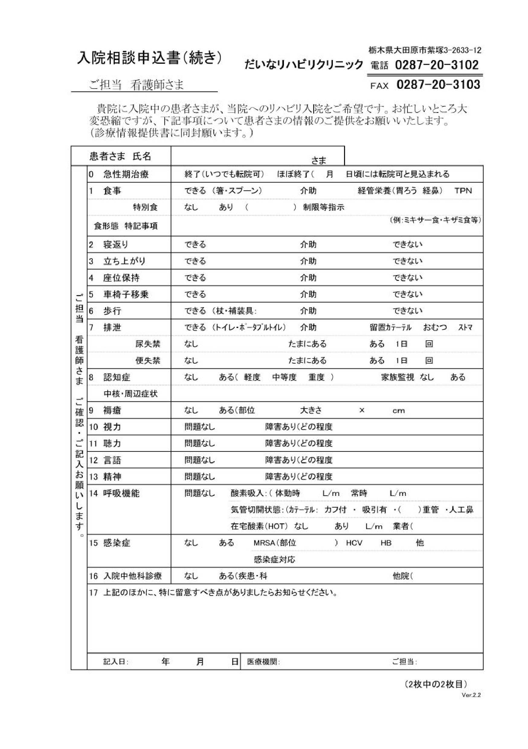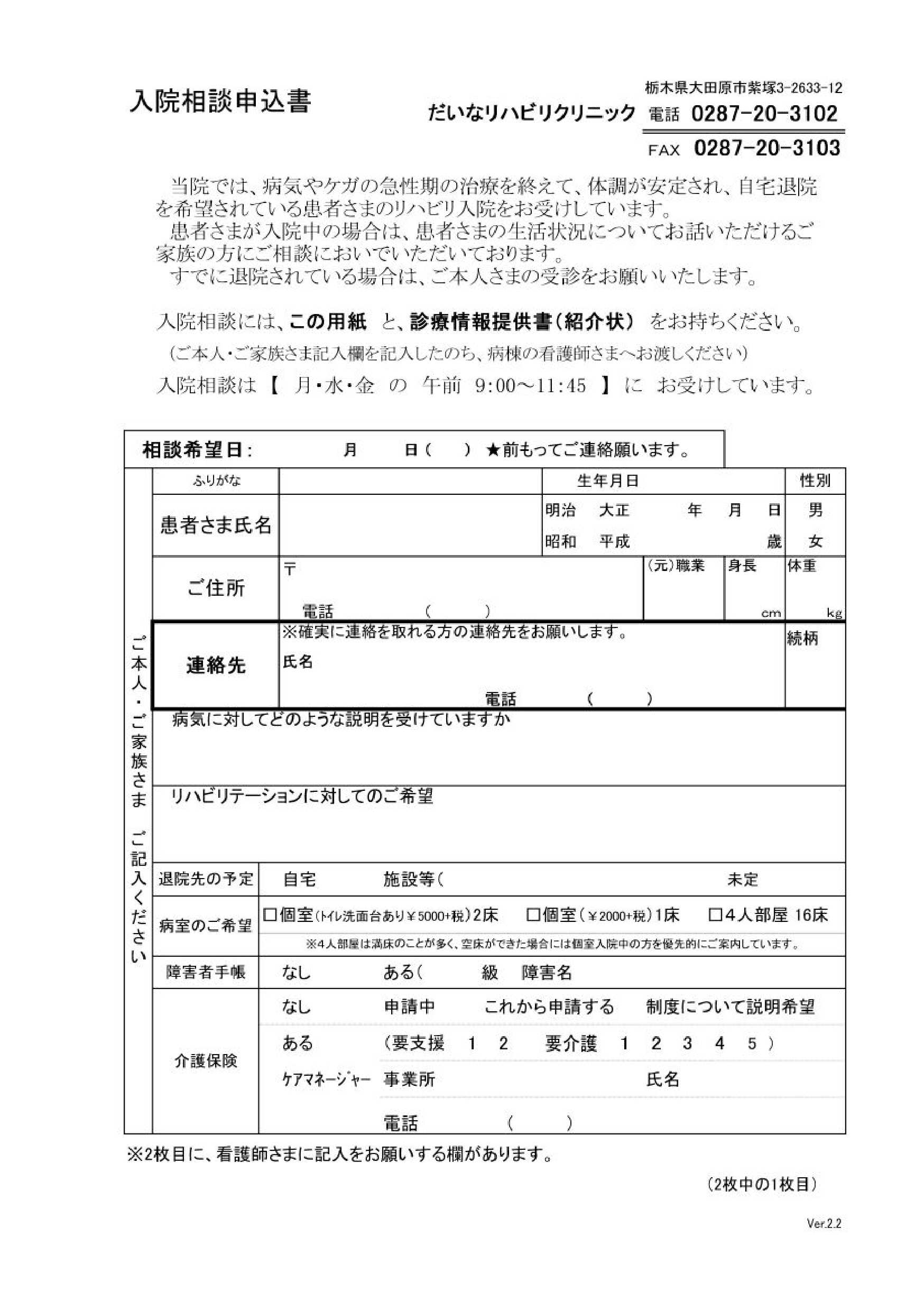入院相談申込書